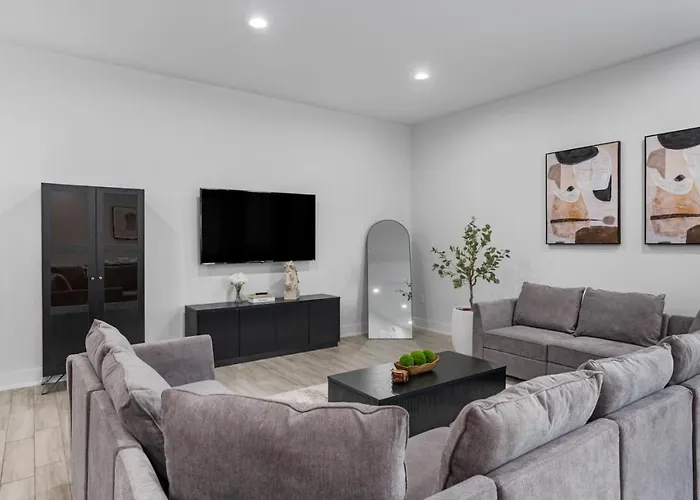 Die Villa Mega Sized Luxury - Up To 24 Ppl - Downtown Access begeistert mit großzügigen Schlafräumen, die sowohl Komfort als auch Stil ausstrahlen. Jeder Raum ist mit hochwertigen Möbeln und eleganten Dekorationen ausgestattet, um eine Wohlfühlatmosphäre zu schaffen. Die Schlafmöglichkeiten sind ideal für Familienfeiern oder besondere Anlässe mit Freunden.